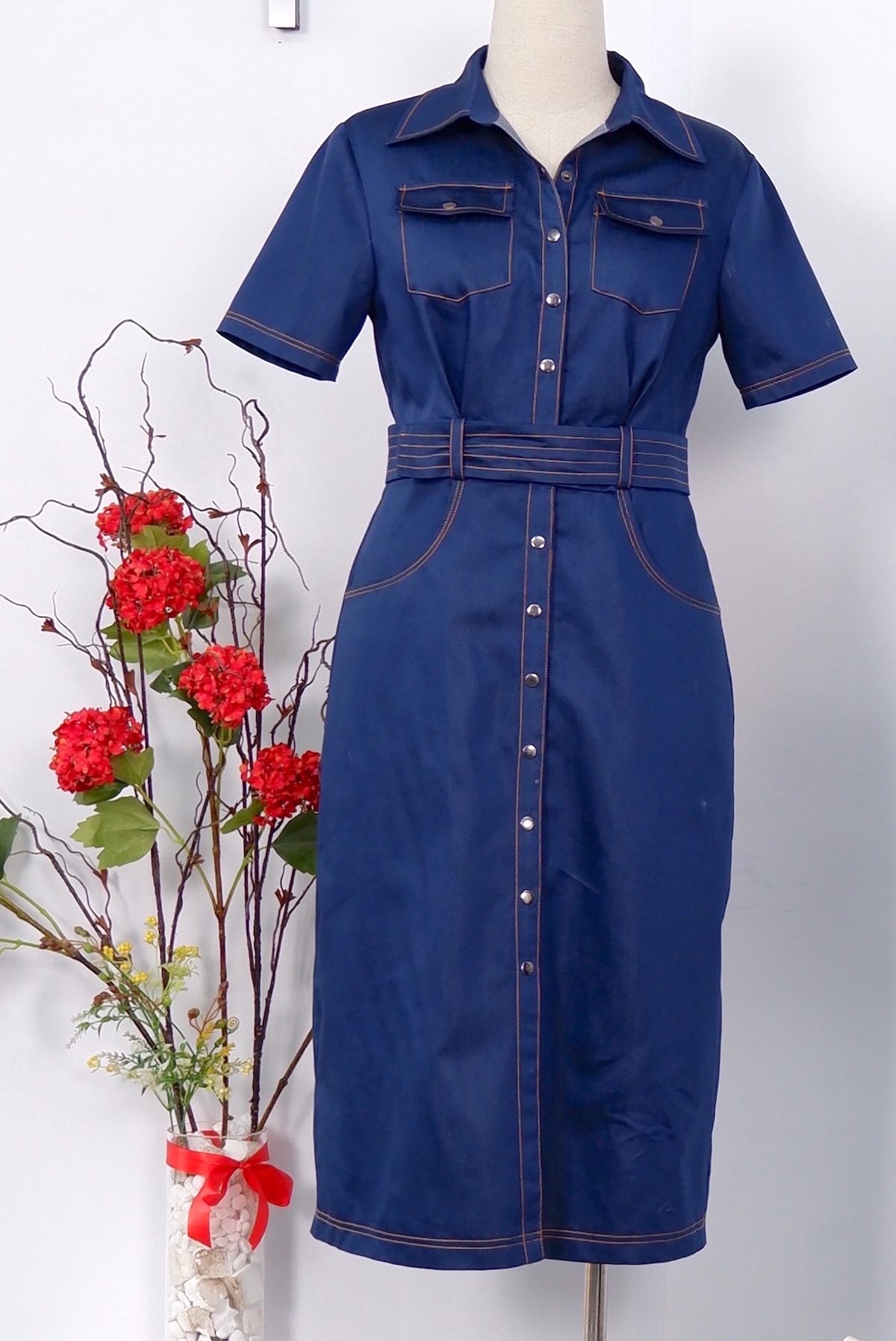 Đầm Denim cổ đức dáng chữ A dài-VLT100223